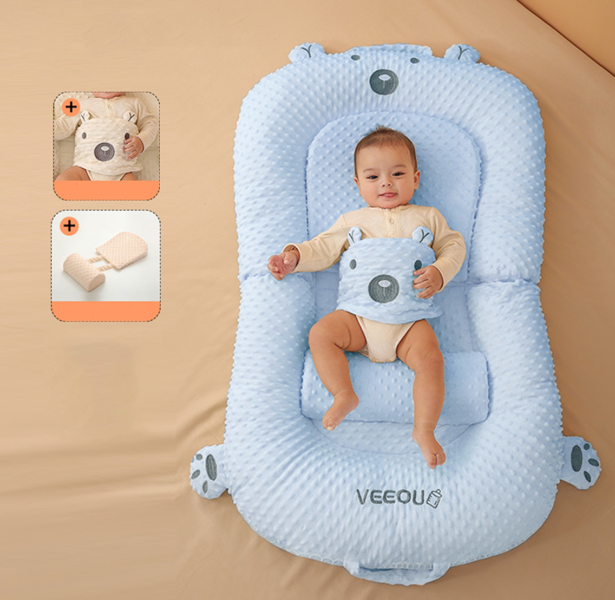 – Đệm thiết kế rộng rãi, bé thoải mái lăn trái phải mà không bị ngã.thành đệm cao giúp các ba mẹ yên tâm ạ