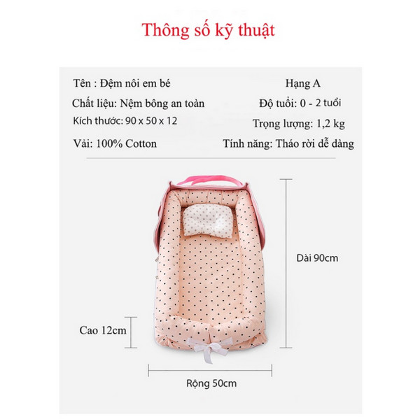 ???? Chất liệu 100% cotton an toàn cho làn da trẻ nhỏ, nôi được thiết kế kích thước phù hợp cho bé nằm rộng rãi thoải mái.